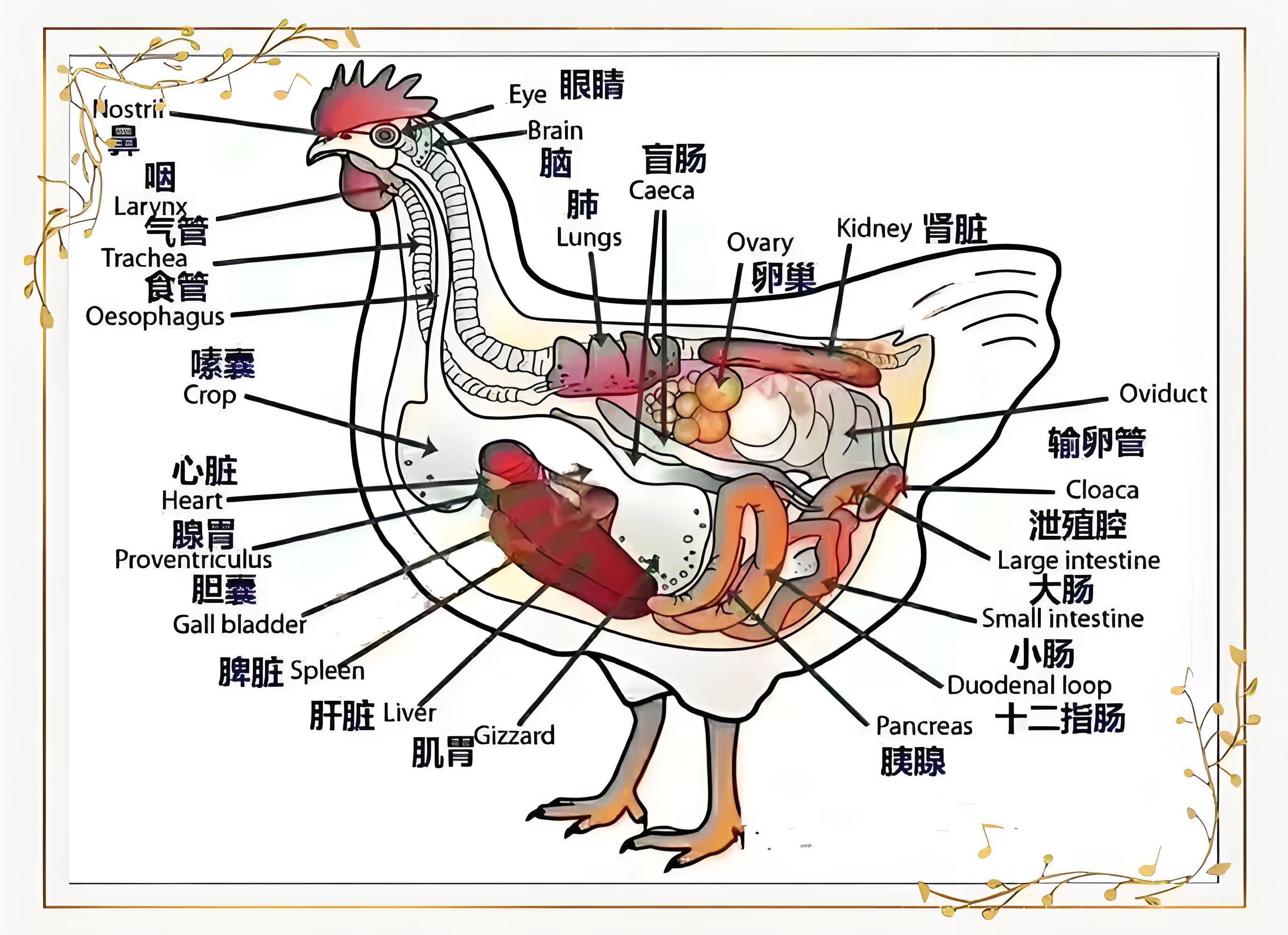 鸡没有咀嚼能力,猎物在进去后仍然是一大块一大块的,所以,鸡会吃一些碎石子、砂砾,在肌胃的内壁和外壁间,有大量肌肉能挤压猎物,帮助小石子更高效的磨碎食物。
