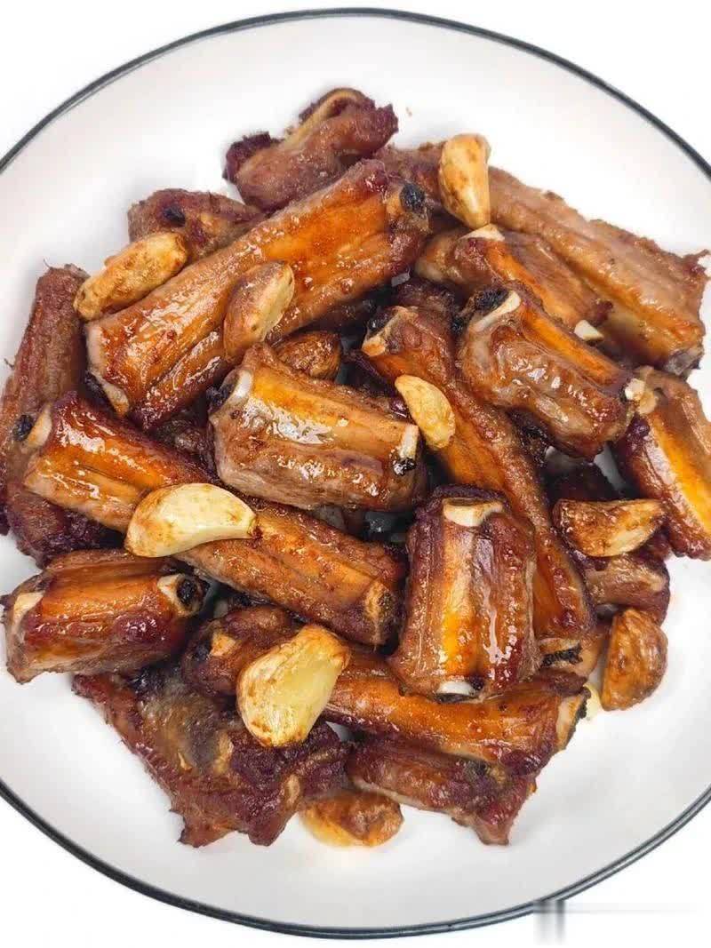 准备食材: 排骨、蒜末、小米辣、椒盐、姜片、葱段。