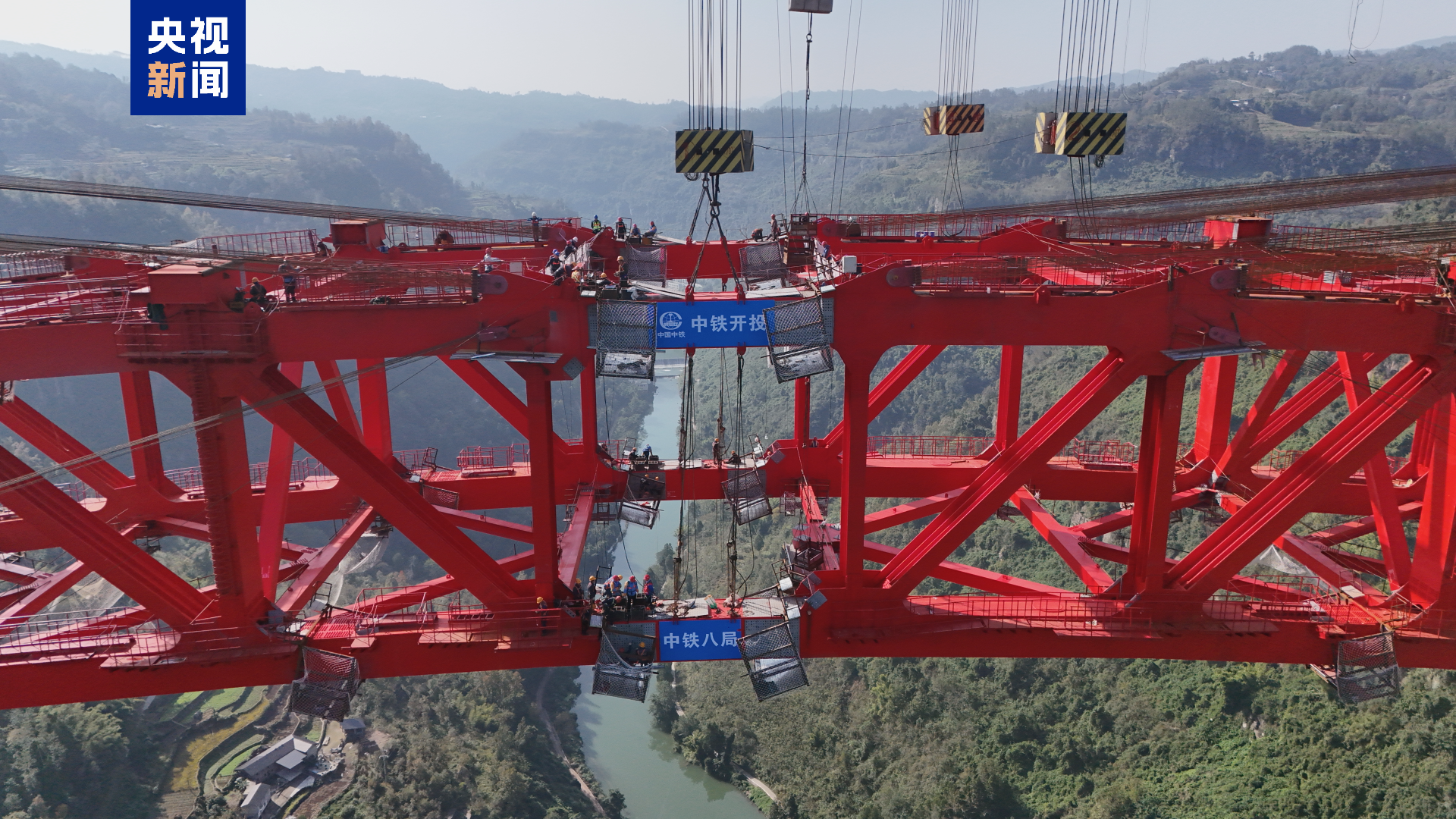 据施工方中铁八局介绍,凤来大溪河特大桥全长1136.7米,主桥采用580米上承式钢箱桁架拱桥宏粤配资,为目前世界跨径最大的钢拱桥。大桥地处武隆区高陡深切峡谷地带,桥面距河面高差超310米,相当于100层楼的高度,全桥采用全钢结构,总用钢量2.5万吨,双平行主桁变截面桁架式结构,最大单节段桁片长39.5米,高18米,重425吨,相当于6层楼高,约140头成年大象的重量。